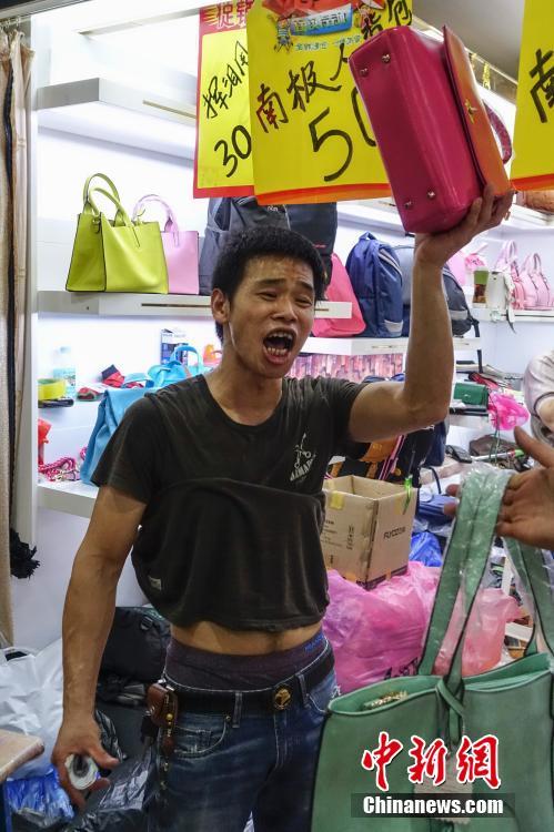 9月15日,一商家舉起商品大聲叫賣。當日,自1992年開業至今的北京天意市場迎來其在北京西城阜外大街營業的最后一日,商家趁機“瘋狂甩貨”,大批北京民眾也紛至沓來。這里曾是北京著名的小商品商城,聚集了數千家商戶。為疏解北京非首都功能,天意商城將于本月16日關門停業。中新社記者 崔楠 攝