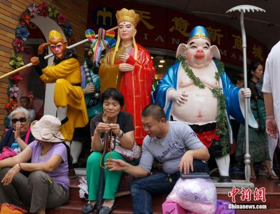 9月15日,一孩童坐在天意門前西游記師徒雕像上遠眺。當日,自1992年開業至今的北京天意市場迎來其在北京西城阜外大街營業的最后一日,商家趁機“瘋狂甩貨”,大批北京民眾也紛至沓來。這里曾是北京著名的小商品商城,聚集了數千家商戶。為疏解北京非首都功能,天意商城將于本月16日關門停業。中新社記者 崔楠 攝