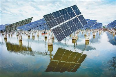 | 晨曦中的光伏發電站。 |