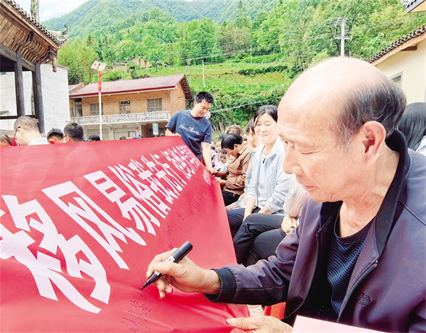 近日,漢濱區葉坪鎮在慶祝中國共產黨成立104周年活動現場,開展“移風易俗我先行 拒絕升學宴請風”簽名和宣講活動。 胡子新 攝i2e安康新聞網