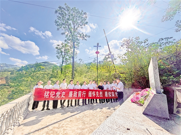 6月26日,旬陽市趙灣初中黨支部組織開展以“銘記黨史 廉政前行 緬懷先烈 賡續榮光”為主題的“七一”主題黨日活動。袁波 攝i2e安康新聞網