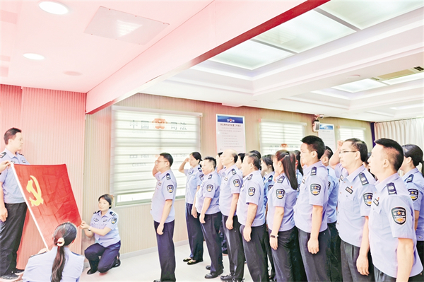 6月26日,紫陽縣司法局組織機關黨支部黨員、局機關及下屬單位干部職工開展“重溫入黨誓詞 汲取奮進力量”主題黨日活動。葉明星 攝i2e安康新聞網