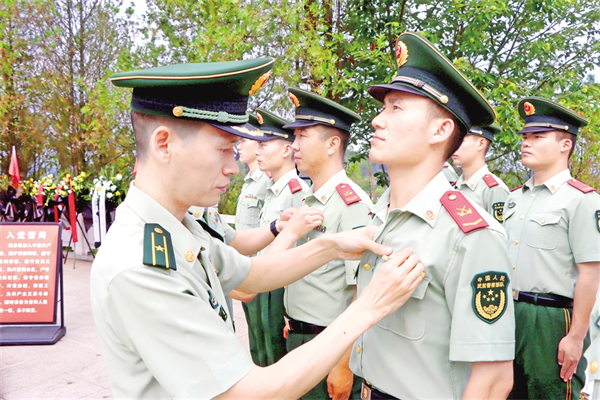 日前,武警安康支隊組織官兵赴平利縣老縣鎮蔣家坪村和牛蹄嶺戰役遺址公園開展形式多樣的主題黨日活動,引導廣大官兵在追尋歷史根脈、接受思想洗禮中堅定“聽黨話、跟黨走”的政治信念。趙坤 陳翔 攝i2e安康新聞網