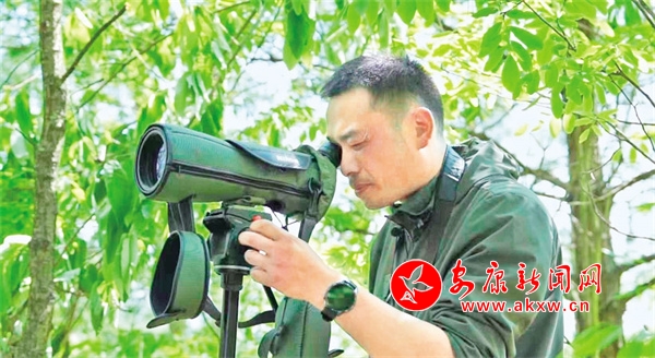 李夏正在野外觀察朱鹮孵化情況 楊穩 攝ijV安康新聞網
