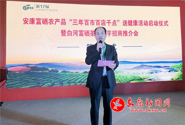 魯琦從生態環境、資源稟賦、區位優勢等方面介紹了安康市情和現代農業發展情況,重點推介了安康富硒茶、富硒魔芋等特色富硒農產品。他表示,安康被譽為“世界硒源、中國硒谷”,天然富硒土壤生長出來的富硒農產品,是人體天然補硒、健康養生的最佳途徑。依托天然富硒資源優勢,全市正聚焦富硒產業綜合產值2000億元目標,全力打造“世界硒源地,國際健康城”。舉辦本次活動旨在搭建經貿交流平臺,讓更多的人認識安康,共享安康富硒茶、富硒魔芋等優質富硒農產品。魯琦向在場100余位當地客商及社會各界發出誠摯邀請,真誠期待和歡迎各界人士到安康投資富硒產業,共建全國富硒產業之鄉、齊為人類健康服務。