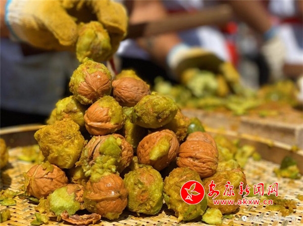 活動現場,伴隨著慶豐收的歡快鑼鼓聲,參加活動的機關干部同農民朋友一道走進核桃園區,滿懷喜悅地從樹枝上采摘核桃鮮果。以核桃為主的富硒農副產品攤位前人頭攢動,一邊在上演農民朋友喜歡的精彩短小節目,一邊在緊張進行著核桃剝殼比賽,現場洋溢著喜慶核桃豐收的濃厚氛圍。啟動儀式上,發布了安康核桃產業發展成效,表彰了10名“安康核桃產業創新成果獎”獲獎者、12名“安康核桃樹王”所有權人。大家還共同見證了白河縣與江蘇等地客商的多個項目合作簽約。
