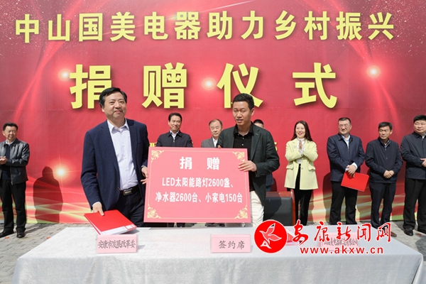 據(jù)了解,此次中山國美電器制造有限公司向我市捐贈LED太陽能路燈2600盞、凈水器2600臺、小家電150個,價值1600萬元,旨在解決農(nóng)村群眾出行的公共照明問題和改善鎮(zhèn)(村)衛(wèi)生院(所)、村委會、學(xué)校、敬老院、社區(qū)工廠的飲水條件,鞏固脫貧成果,助力鄉(xiāng)村振興。