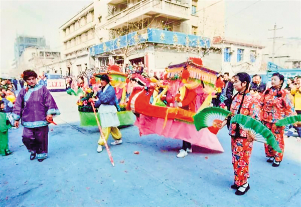 1982年的正月燈節時,安康城區的群眾在大北街道觀看燈節的表演(圖一)。1985年正月燈節時,安康城區的各單位也參與到花燈表演,歡天喜地地舞龍弄獅,熱熱鬧鬧地過大年(圖二)。2002年春節,旬陽縣城的人們被熱鬧的彩船表演所吸引。其中“老搖婆”的扮演者朱漢春老人是當地有名的文藝愛好者(圖三)。