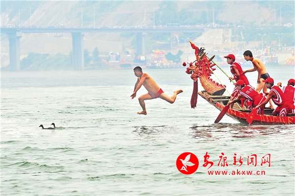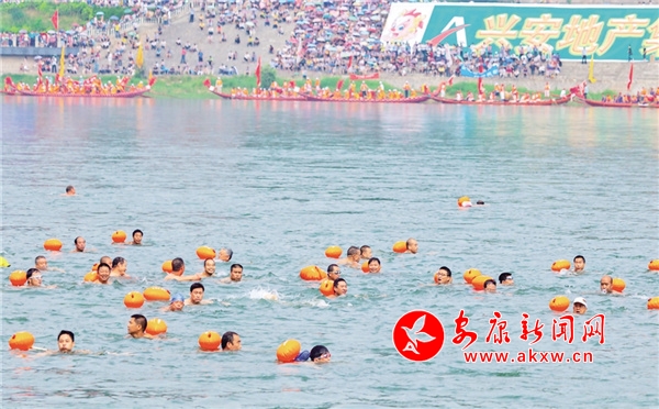 2011年,第十一屆安康龍舟節(jié)開幕式上,開展搶鴨子比賽。林江 攝