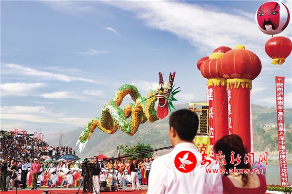 2013年,第十三屆安康龍舟節(jié)開幕式上的舞龍表演。 吳單 攝