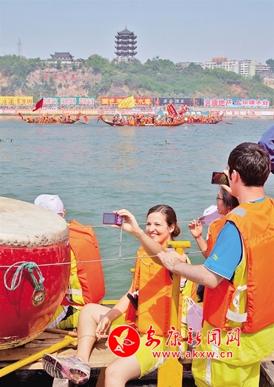 2011年龍舟節(jié)期間,外國游客體驗劃龍舟。邵向東 攝