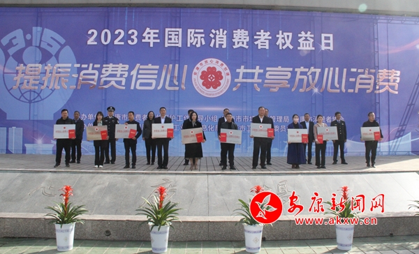 活動中,市市場監督管理局、市公安局、市工業和信息化局、市衛生健康委員會分別就2022年度消費維權工作向社會進行了通報,并對20家創建2022年度市級放心消費示范單位頒發證書并授牌。