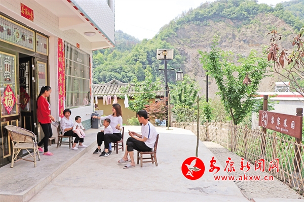 5月18日,大竹園鎮糧茶村,一家人在干凈整潔的院子里休息。周濬 攝