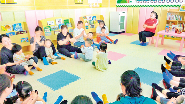 9月7日,在城關鎮旱壩村養育中心,家住附近的居民趙文婭每天都會帶著一歲四個月的孩子沈星宇來上課。
