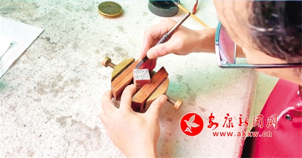 說(shuō)起機(jī)器雕刻的市場(chǎng)優(yōu)勢(shì),郭榮高的神色中閃過(guò)一絲落寞,但又轉(zhuǎn)瞬即逝。他說(shuō),作為這個(gè)行業(yè)的傳承人,應(yīng)該始終如一追求書法的構(gòu)思和手工雕刻的質(zhì)感,讓文化張揚(yáng)個(gè)人風(fēng)格,讓作品不乏人文氣質(zhì)。在他看來(lái),手工碑刻有韻律感,線條古樸自然,而機(jī)器篆刻是完全復(fù)制,只是一些均勻的線條而已。很多情感上的東西是機(jī)器無(wú)法替代的。