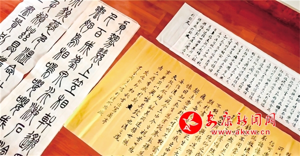 識(shí)字、書寫成了制約郭家生意的最大瓶頸,15歲的郭榮高便第一次走進(jìn)新華書店,買了人生第一本字帖——顏真卿的《多寶塔》。雖然每天用報(bào)紙、木板沾水練字,郭榮高覺(jué)得自己進(jìn)步并不大,筆法、結(jié)構(gòu)、快慢、輕重、大小、呼應(yīng)、承讓、向背、提按、頓挫等自己都掌握得不好。于是他又想盡辦法拜師,先后師從韓正楷、劉暘光、馬昌琪等安康本土?xí)摇?span style="display:none">Add安康新聞網(wǎng)