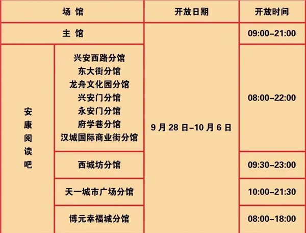 中秋、國慶期間,我市持續陰雨天氣,為加大文旅惠民力度,豐富文旅服務供給,提升文旅服務質量,使廣大市民和游客度過一個安定、祥和、愉快的假期。安康市中心城區各文博場館10月1日至10月6日將適當延長場館開放時間。安康博物館、安康市群眾藝術館、安康市藏一角博物館開放時間延長至晚19:00。安康市圖書館、安康美術館開放時間延長至晚21:00。