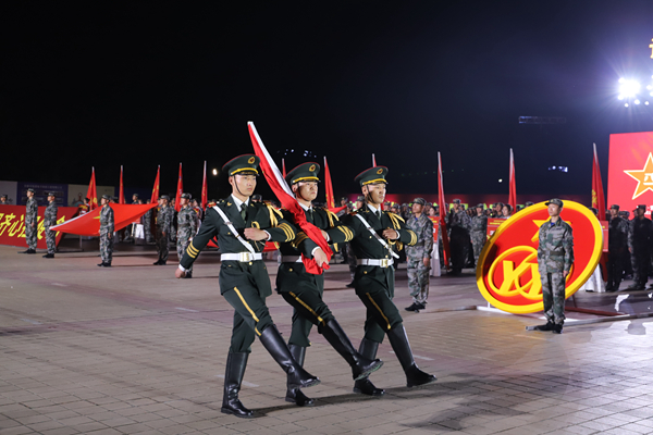 入場儀式完畢,全場起立,面向國旗,共同高唱國歌。伴隨著高亢雄壯的國歌聲,五星紅旗冉冉升起。在國旗下,全體退役軍人高舉右拳莊嚴宣誓,表達了退伍軍人堅定不移聽黨話、跟黨走的決心和意志。