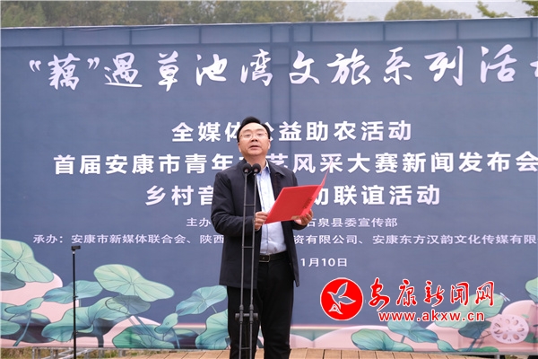 本網訊(記者 陳曦 李俊 實習記者 卜昊天)11月10日,“藕”遇草池灣全媒體公益助農活動順利舉辦。此次活動是“藕”遇草池灣系列文旅活動的一個單元,由安康日報社、石泉縣委宣傳部主辦,安康市新媒體聯合會、陜西安康博泰投資有限公司、安康東方漢韻文化傳媒有限公司承辦。wBh安康新聞網
