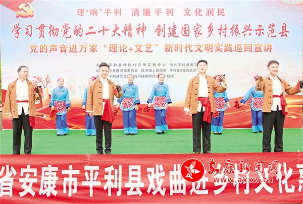 平利縣文化惠民文藝輕騎兵以新時代“理論+曲藝”為載體,將鄉村振興、平安建設等政策理論知識融入歌曲、快板等文藝節目中去,穿行于平利縣的各個鎮村之間,把廣大群眾需求的精神文化食糧送到家門口,把黨的政策理論用通俗易懂的表演形式傳達到百姓的心坎里,以實際行動踐行“文化為民,文化惠民”。