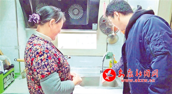 四畝地鎮柴家關村駐村第一書記郭華入戶查看自來水壓 楊穩 攝