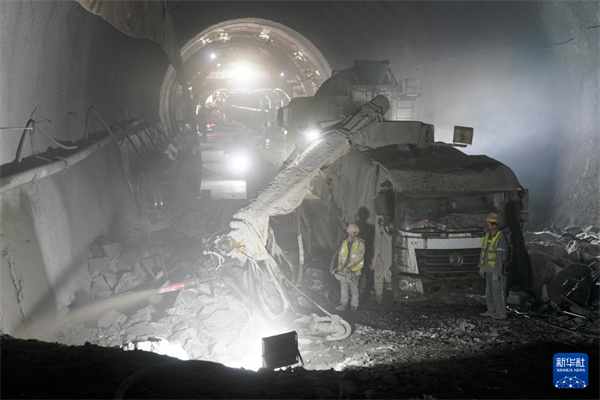 △ 1月26日,在長達(dá)13.3公里的西康高鐵秦嶺九天山隧道內(nèi),中鐵七局集團(tuán)的工人在開挖面作業(yè)。新華社記者 邵瑞 攝