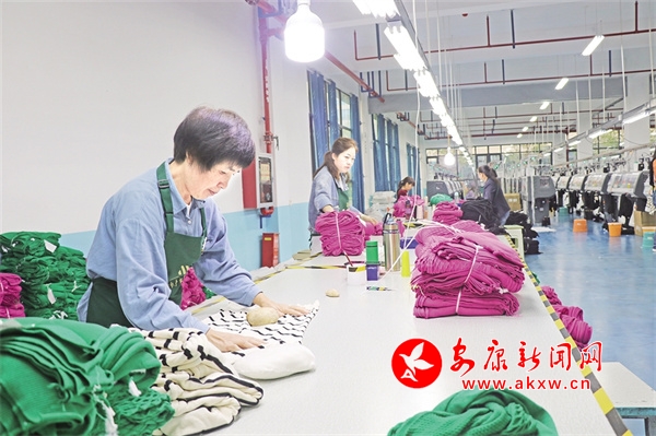“我在這里做查片、補(bǔ)片。工作了大半年了,工資7000元左右。廠里每天還管三餐。”在家門口拿到比較滿意的工資,這是杜金瓊以前難以想象的好事。她曾在廣東務(wù)工近二十年,稱得上是紡織服裝行業(yè)資深從業(yè)者。得知西北紡織服裝產(chǎn)業(yè)城一期部分企業(yè)投產(chǎn)有大量用工需求,半年前,杜金瓊返鄉(xiāng)工作,并迅速成為廠里的技術(shù)骨干。“技術(shù)含量肯定是有的,但說(shuō)難也不難,只要肯用心,練習(xí)實(shí)踐半年就能上手。”杜金瓊說(shuō)。