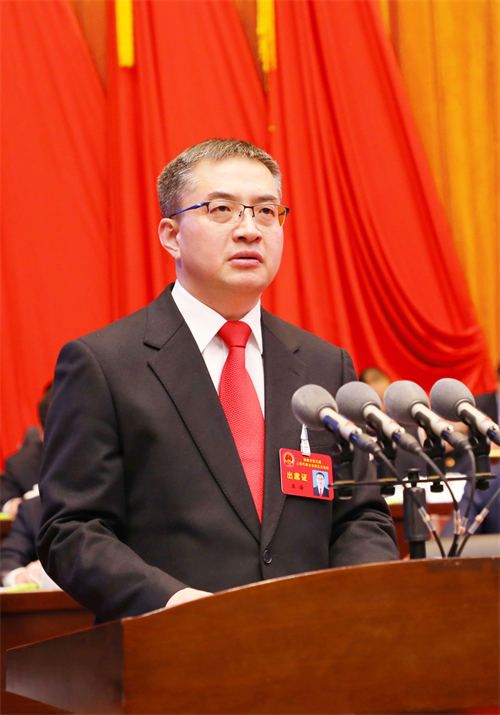 △ 市長王浩代表市人民政府作工作報告。記者 魏濤 攝C7e安康新聞網