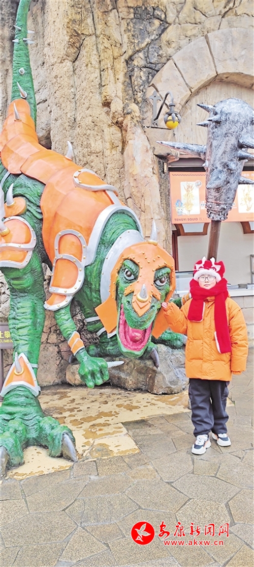 接下來,我們來到遠近聞名的恐龍園參觀,被樂園中各種恐龍的模型所吸引,尤其是那高大威猛的霸王龍,讓我們仿佛來到了一個古老、神秘的世界。更為暖心的是,在這里,我們還遇到了一位慈祥和藹的老爺爺——安康市毛絨玩具產業招商顧問袁小忠。