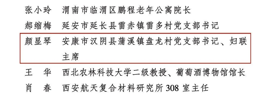 其中,安康市漢陰縣蒲溪鎮(zhèn)盤龍村黨支部書記、婦聯(lián)主席顏顯琴獲得“全國三八紅旗手”稱號。N3K安康新聞網(wǎng)