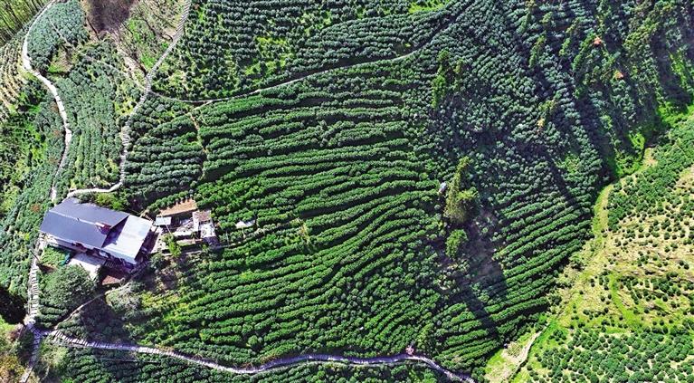 3月27日航拍的安康市紫陽縣煥古鎮茶園。 陜西日報記者 田若楠攝