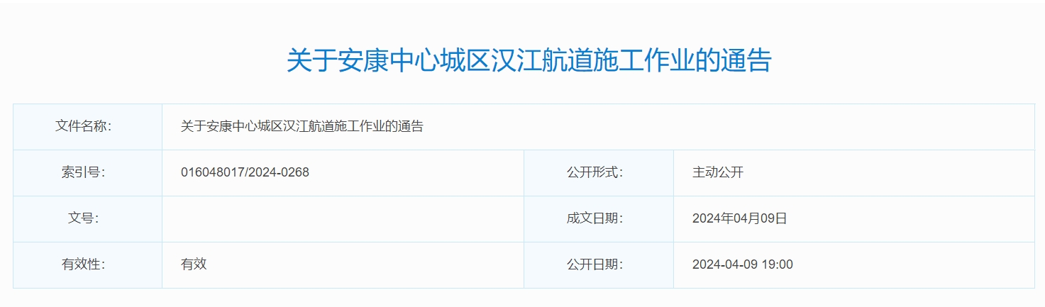 關于安康中心城區漢江航道施工作業的通告ADt安康新聞網