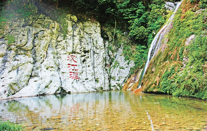 炎炎夏日,秦巴秀水掩映之間,在陜西省漢中市寧強縣漢水源國家濕地公園,一條清澈小溪蜿蜒淌出,溯溪而上,紅豆杉、香果樹等漫山遍野、郁郁蔥蔥,游人如同行走在水墨丹青畫卷中,美不勝收。河谷腹地深處,奇峰怪石點綴,飛瀑流泉高懸,旁邊崖壁上鐫刻著“漢江源”3個大字。