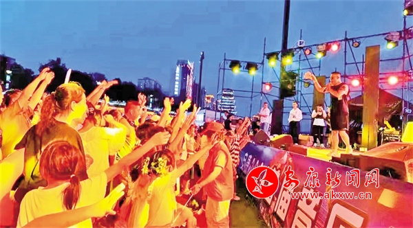 本網訊(通訊員 錢運立 任雪姣)音浪涌動漢江畔,激情旋律共狂歡,熱辣的夏天迎來活力四射的舞臺,7月12日,安康中心城區親水廣場首屆園旅融合親水音樂節盛大開幕,精彩的演出吸引廣大游客、市民沉浸在歡樂的海洋中。