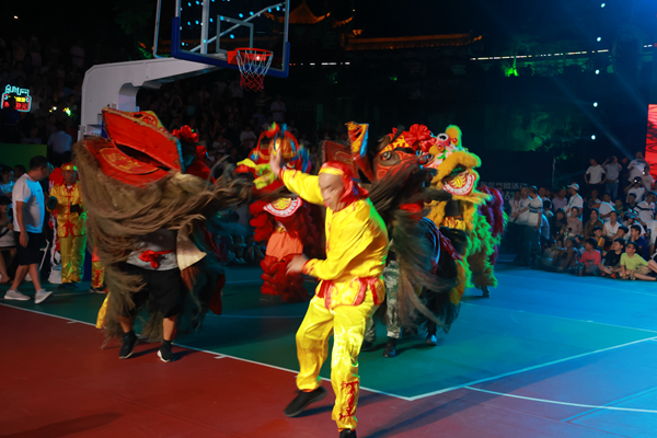 8月27日,賽事已經連續激戰了12個日夜,每一場比賽都讓觀眾們大飽眼福。晚9時左右,隨著第一場比賽的終場哨聲響起,整個廣場的氛圍并沒有因為比賽的結束而冷卻,反而因為接下來的精彩節目而更加熱烈起來!赌蠈m雄獅》作為中場休息的特別節目火熱上演。隨著激昂的鼓點響起,兩只色彩鮮艷、造型威猛的雄獅在舞獅者的操控下,瞬間吸引了所有人的目光。它們時而翻騰跳躍,展現出驚人的靈活與力量;時而憨態可掬,逗得觀眾捧腹大笑。舞獅者們更是憑借高超的技藝和默契的配合,將雄獅的威猛與靈動演繹得淋漓盡致。