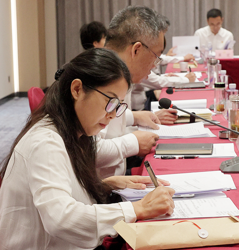 在市委五屆七次全會小組會議上,與會人員認真記錄。 記者 潘潤生 攝