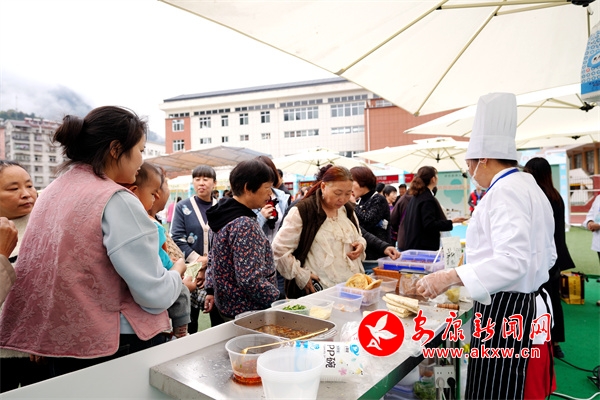活動在開場歌舞《老百姓的好心情》中拉開序幕。大賽吸引了30位廚藝高手同場競技、各顯身手。他們根據食材煎、炒、燉、煮,從選材配料、起鍋烹飪到擺盤裝飾、成品出爐一氣呵成,一道道色、香、味、形俱全的特色佳肴陳列在評比展臺接受評委和現場觀眾品鑒點評。菜刀和案板的撞擊聲、鍋鏟和鐵鍋的碰撞聲、食材與沸油的翻炒聲,打卡拍照的人群,緊張忙碌的廚師,怦然升騰的煙火……共同勾畫出一派熱火朝天的生動景象。