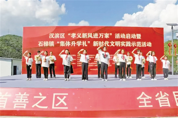 漢濱區以建設崇德向上幸福安康為目標,以孝義善舉培育工程為抓手,融合理論武裝鑄魂、優秀文化傳承、文明建設提質、以文塑旅增效“四大工程”,通過教育引導、教育引領、文明實踐、成果評價、工作保障“五個體系”建設,致力于以“孝”帶“德”、以“義”促“業”,打造“孝義文化”道德高地,孝義文化的軟實力正逐漸成為促進漢濱社會治理和經濟發展的硬支撐。