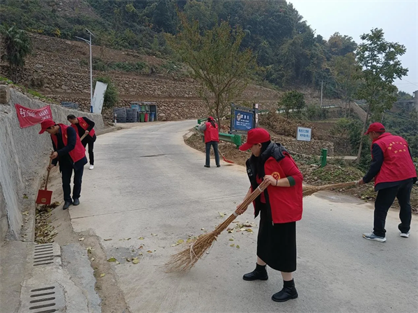 瀛湖鎮王巖村黨員干部、公益崗人員對主干道路進行清掃