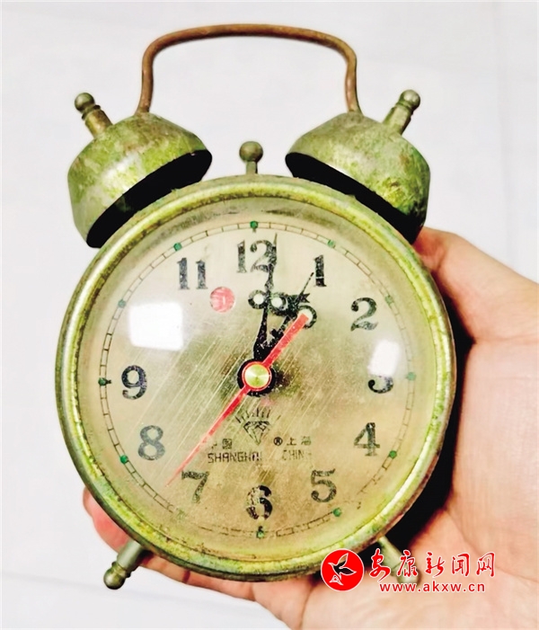 那是我人生中擁有的第一個計時工具。時過55年了,至今我還記得它的模樣。石榴籽紅的鐘盤、電鍍閃閃發亮的、橢圓形的外殼。我夫人陳雙琴每天都要用抹布小心翼翼地擦擦它。從此以后,我們上班和作息就知道時間了!t97安康新聞網
