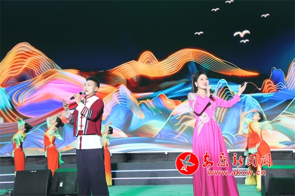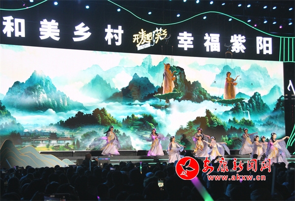 王彪宣布紫陽茶文旅融合IP“開麥吧!茶鄉”啟幕;顒右“和美鄉村 幸福紫陽”為主題。活動現場燈光如晝,隨著激情的旋律,17個鎮代表隊陸續進場。600架無人機騰空而起,以茶為主題,以蒼穹為幕、夜空作畫,演繹《茶歌紫陽·幸福安康》,組成“開麥吧·茶鄉”“漢江畫廊 茶歌紫陽”“紫陽富硒茶 越喝越想TA”等巨型字樣時,現場爆發出雷鳴般的掌聲。期間,活動總導演作“開麥吧!茶鄉”賽制介紹。伴隨著現場觀眾的激情歡呼,文藝節目相繼上演!堕_麥吧!茶鄉》《茶史長歌》《吉祥頌》《故鄉》《紫陽仙子》《硒谷放歌》《高山茶語》等節目將紫陽豐富的旅游資源、特色產業、人文風情展現得淋漓盡致,掌聲如潮,喝彩聲、吶喊聲此起彼伏。中國內地歌手韓磊演唱的歌曲《走四方》《等待》《再借五百年》《不忘初心》將現場氣氛推向高潮。絢爛的燈光秀、煙花秀閃耀全場,光與影的交織變換構成了一幅幅絕妙畫卷。在全場所有演員同唱蹦茶迪《嗨·茶鄉》后,文藝演出落下帷幕。