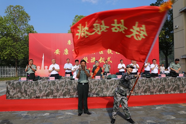漢濱區舉行“鐵姑娘”女子民兵排授旗儀式