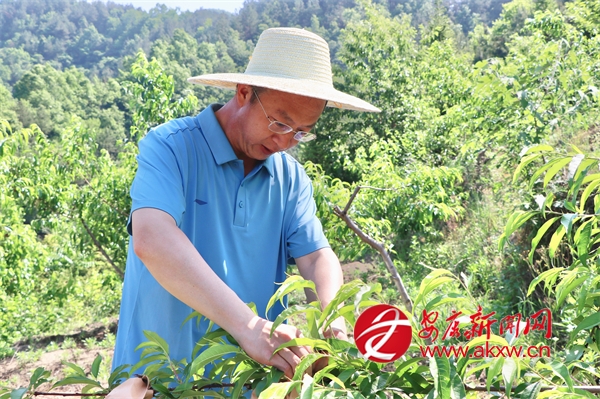 陜煤集團(tuán)派駐漢陰縣雙河口鎮(zhèn)幸和村第一書記高勇正在給桃樹套袋