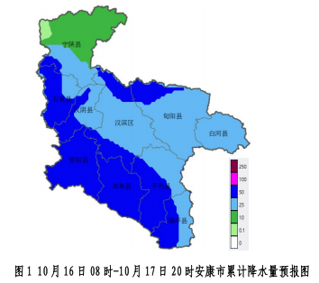 10月16日:陰天轉(zhuǎn)大雨,寧陜、石泉、漢陰、紫陽(yáng)、嵐皋、漢濱北部、旬陽(yáng)北部局地暴雨(25~60毫米,局地可達(dá)70毫米以上);