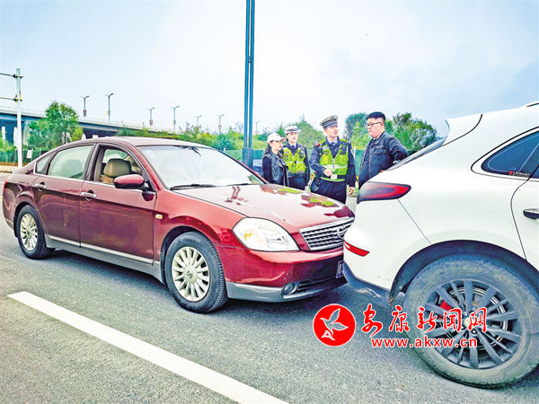 交警在東壩內環東路快速處理交通事故。 唐正飛 攝(市道路交通事故快速處理服務中心供圖)記者 唐正飛 實習生 曹藝瑤“你會不會開車,這么寬的路你不走,非要朝我……