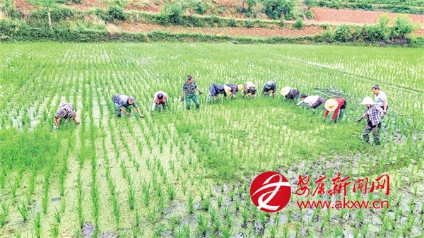 6月3日,石泉縣城關鎮搶抓農時,組織人力物力開展科學田管和綠色防控工作,夯實秋糧穩產基礎。圖為絲銀壩村集體經濟合作社組織農戶開展稻田除草作業。 董長松 攝……