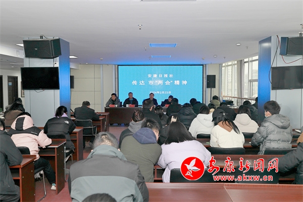 本網訊(記者 翟本榮) 2月23日,安康日報社召開專題會議,黨委書記、社長王建傳達市“兩會”精神,重點輔導學習政府工作報告,并就下一步工作落實情況作出具體部署。報網全體干部職工、下屬企業負責人150余人參加學習。
