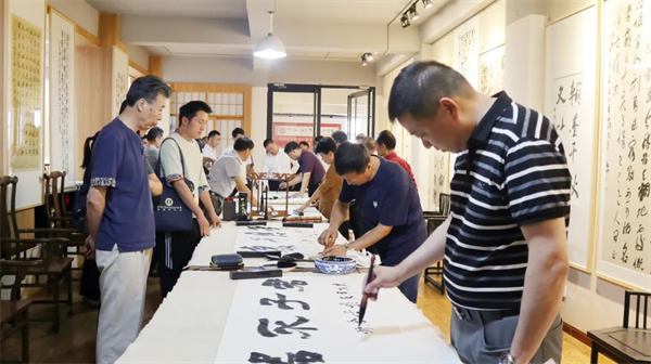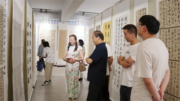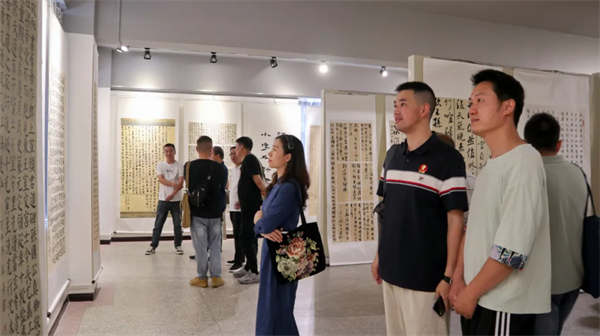 儀式結束后,全體與會人員共同前往書法展廳參觀,相互交流經驗、研討切磋,現場揮毫潑墨,為活動助力添彩。