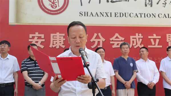 陜西省教育書法研究會常務副會長兼秘書長馬偉宣讀《關于成立陜西省教育書法研究會安康分會的批復》文件。