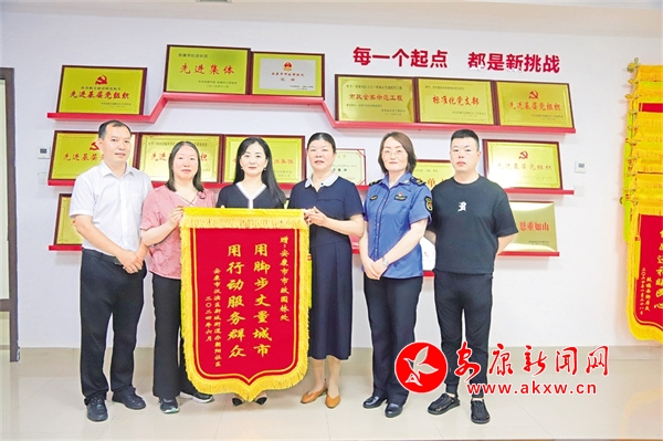 本網訊(通訊員 錢運立)“現在的朝陽街道路平整、排水通暢、綠化美觀,你們用腳步丈量城市,解決的問題正是社區百姓心頭所盼,我們代表轄區群眾感謝你們的用心服務。”7月9日,漢濱區朝陽社區書記袁小紅一行,專程為市市政園林處送來“用腳步丈量城市,用行動服務群眾”的錦旗。